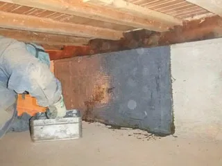 既存木造住宅のひび割れ補修と、布基礎(コンクリート)補強剤を用いた補修を行いました。